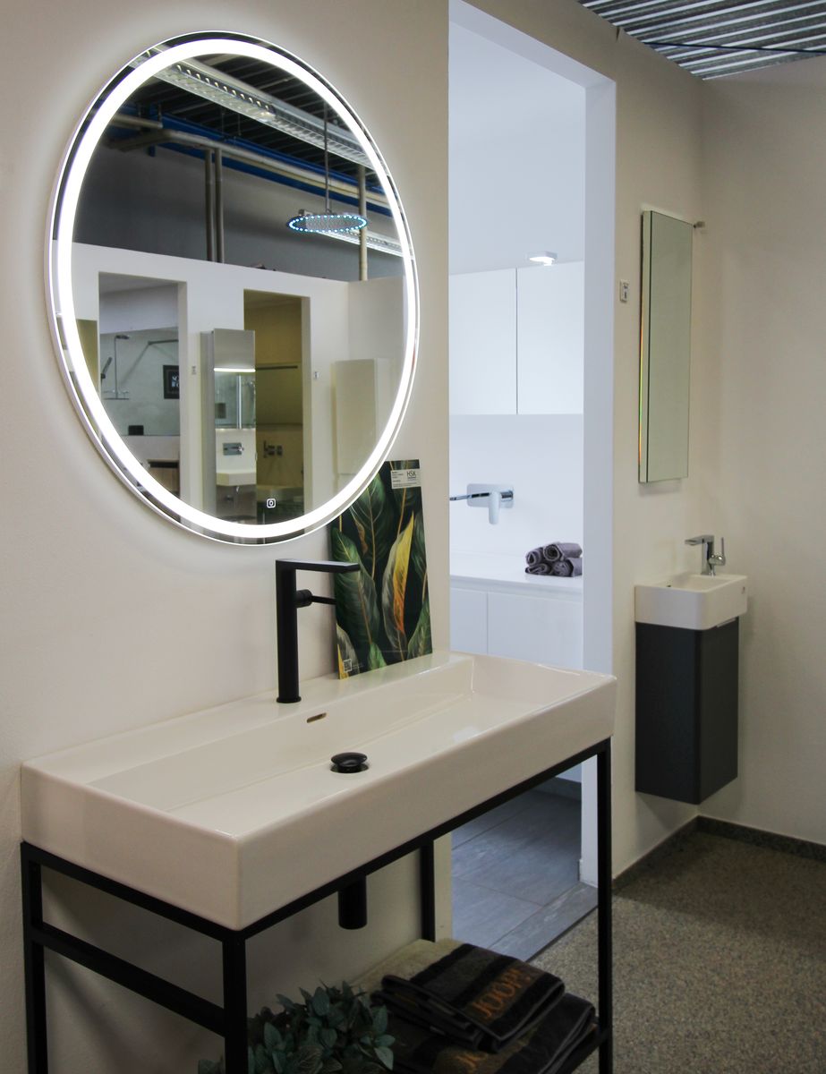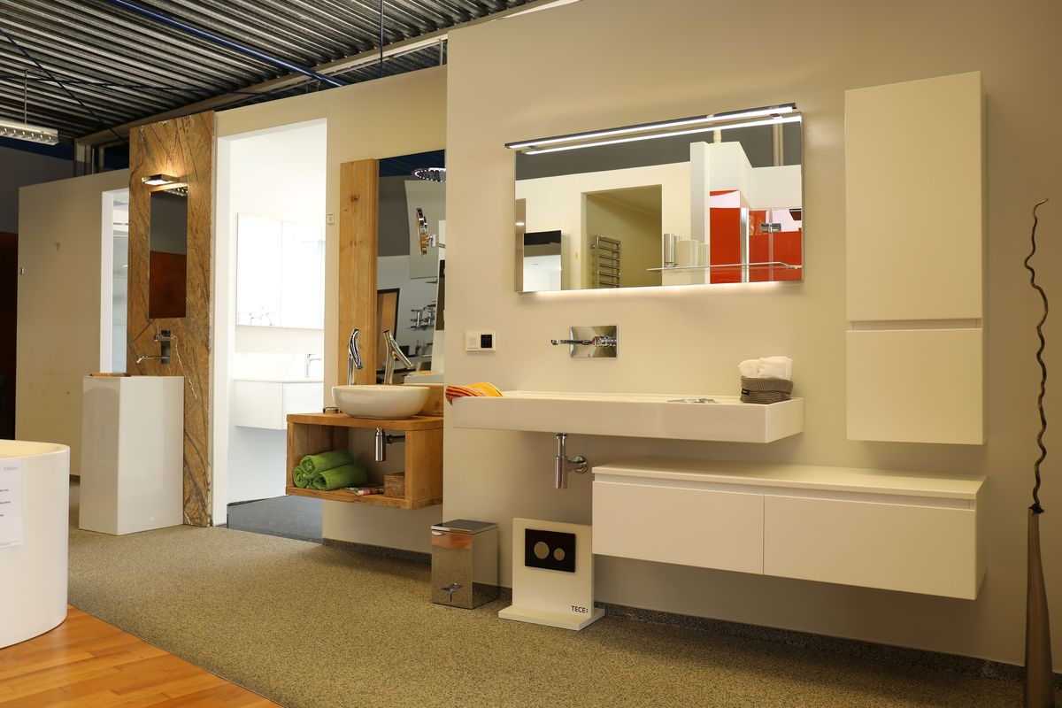 Auf einer gut 300 m2 großen Ausstellungsfläche präsentieren wir Ihnen Beispiele, die Sie in Ihren Traum von einem neuen Badezimmer einfließen lassen können. Lassen Sie sich dabei in einem wunderschönen Ambiente, das in dieser Art seines Gleichen sucht, von unterschiedlichen Stilrichtungen – konservativ oder hochmodern – mit vielfältigen Formen und endlosen Einrichtungsmöglichkeiten sowie einzigartiger Technik inspirieren. Selbstverständlich stellen wir Ihnen auch barrierefreie Lösungen eines Badezimmers, unter anderem mit drei unterschiedlich begehbaren Badewannen, vor.